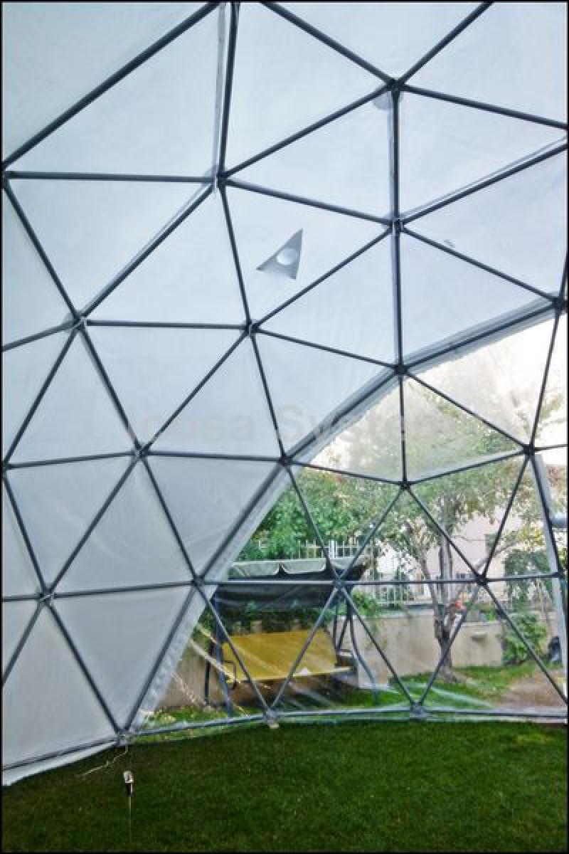 45 metrekare çaplı 4.5 metre yüksekliğe sahip jeodezik çadır imalatımız.